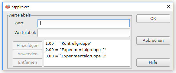 informativen Namen zuweisen. Beispiel: Wert 1 - Wertelabel Sehr gut